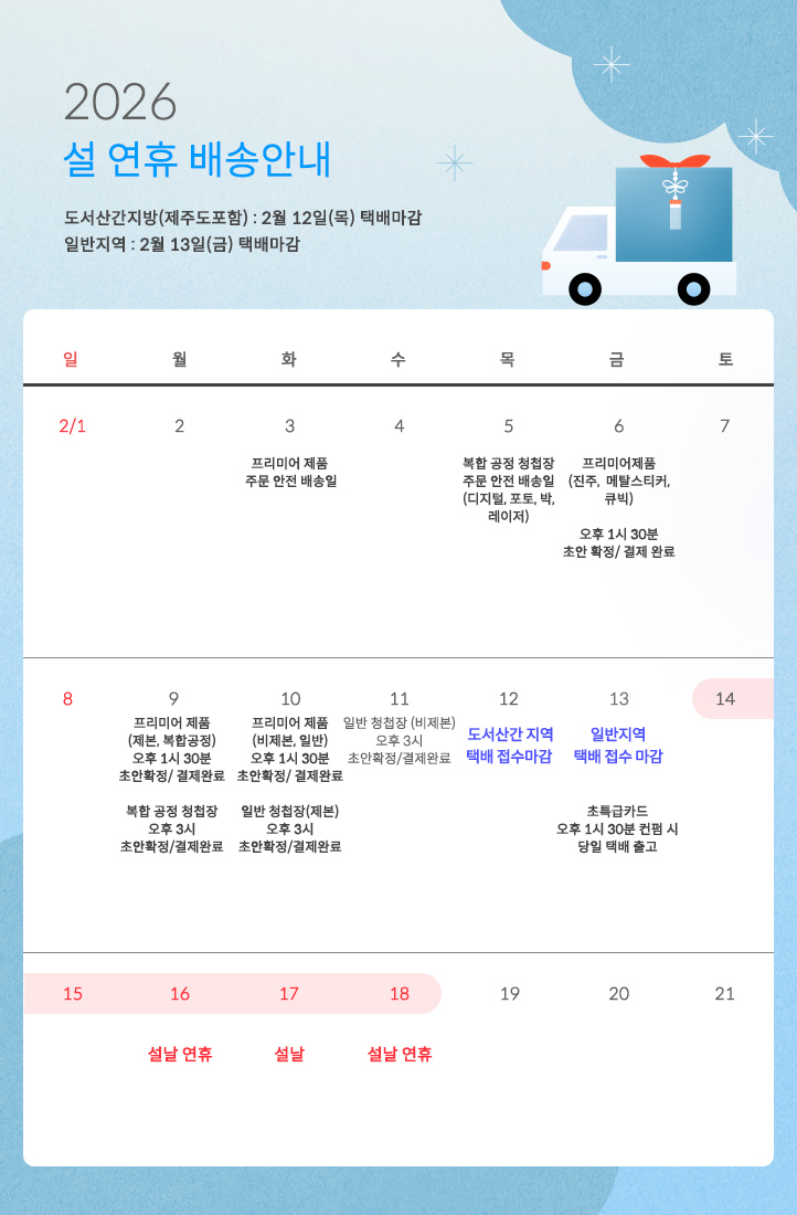 [필독] 2026 설 연휴 배송 일정 안내 |
