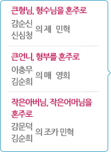 일반적으로 신랑은 형제끼리, 신부는 자매끼리 따져서 표기합니다 |