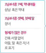이때 서열 표기는 상황에 맞춰 제(매), 질자(질녀), 조카, 손자(손녀) 등으로 표기 합니다. |