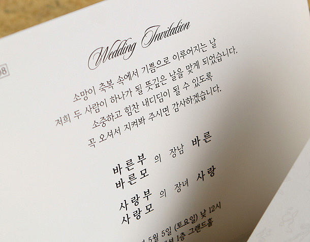 • 6. 청첩장은 앞면을 더 크게 제작하기 때문에 접었을 때 뒷면이 더 짧게 보여요.