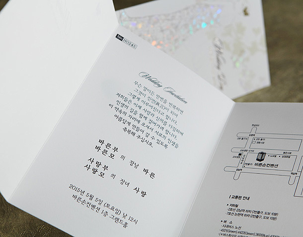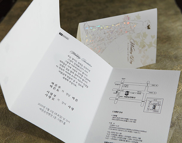 • 6. 청첩장은 앞면을 더 크게 제작하기 때문에 접었을 때 뒷면이 더 짧게 보여요.