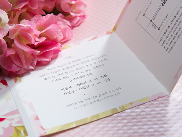 • 6. 청첩장은 앞면을 더 크게 제작하기 때문에 접었을 때 뒷면이 더 짧게 보여요.