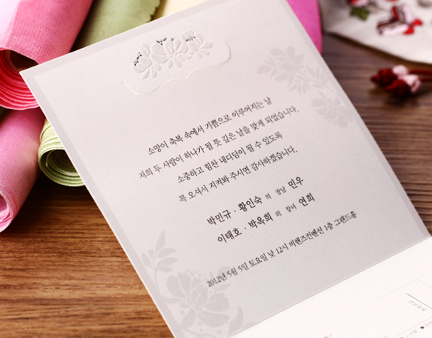 • 6. 청첩장은 앞면을 더 크게 제작하기 때문에 접었을 때 뒷면이 더 짧게 보여요.