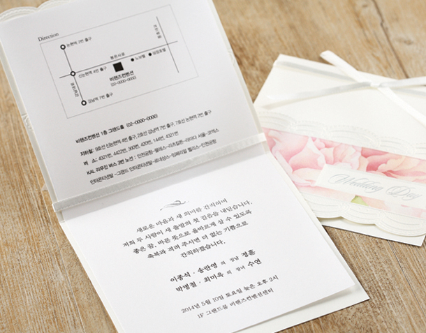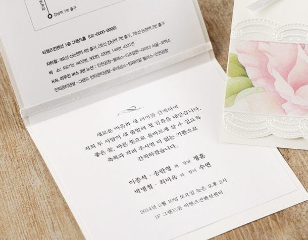 • 6. 청첩장은 앞면을 더 크게 제작하기 때문에 접었을 때 뒷면이 더 짧게 보여요.