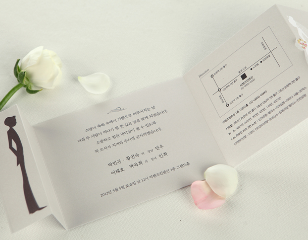 • 6. 청첩장은 앞면을 더 크게 제작하기 때문에 접었을 때 뒷면이 더 짧게 보여요.