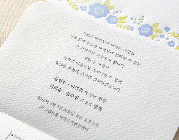 • 청첩장 주문 후 받아보시기까지는 7-10일 정도 걸릴 수 있어요.