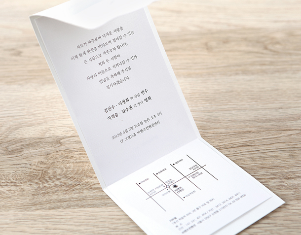 • 6. 청첩장은 앞면을 더 크게 제작하기 때문에 접었을 때 뒷면이 더 짧게 보여요.