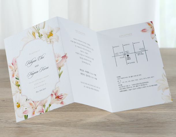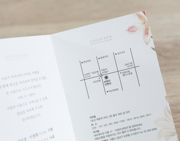 • 6. 청첩장은 앞면을 더 크게 제작하기 때문에 접었을 때 뒷면이 더 짧게 보여요.