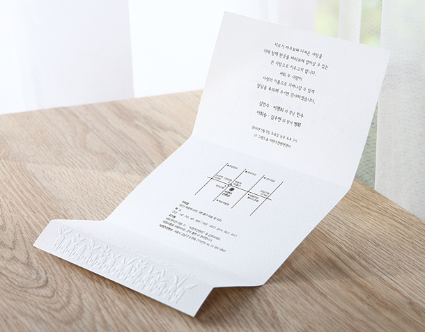 • 6. 청첩장은 앞면을 더 크게 제작하기 때문에 접었을 때 뒷면이 더 짧게 보여요.