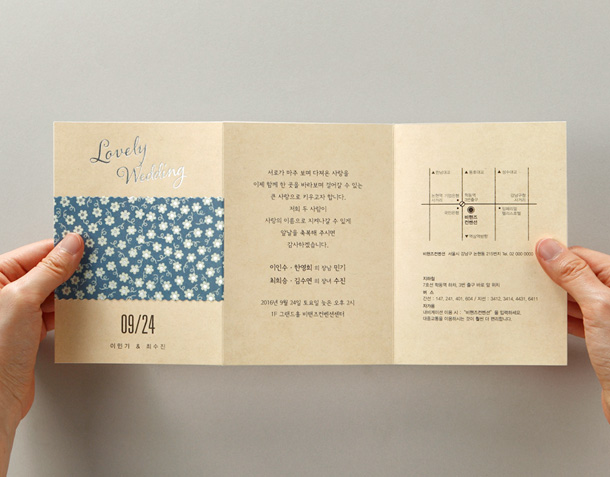 • 6. 청첩장은 앞면을 더 크게 제작하기 때문에 접었을 때 뒷면이 더 짧게 보여요.