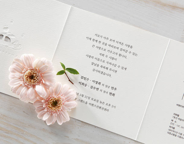 • 6. 청첩장은 앞면을 더 크게 제작하기 때문에 접었을 때 뒷면이 더 짧게 보여요.