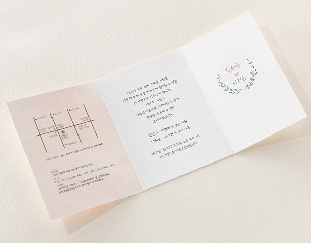 • 6. 청첩장은 앞면을 더 크게 제작하기 때문에 접었을 때 뒷면이 더 짧게 보여요.