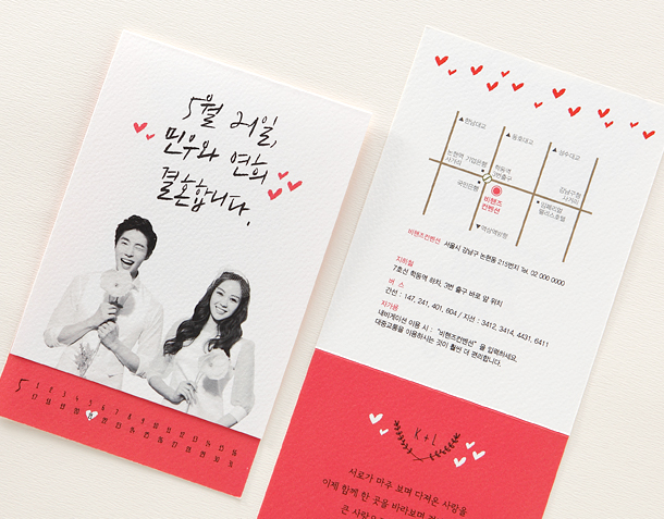 • 6. 청첩장은 앞면을 더 크게 제작하기 때문에 접었을 때 뒷면이 더 짧게 보여요.
