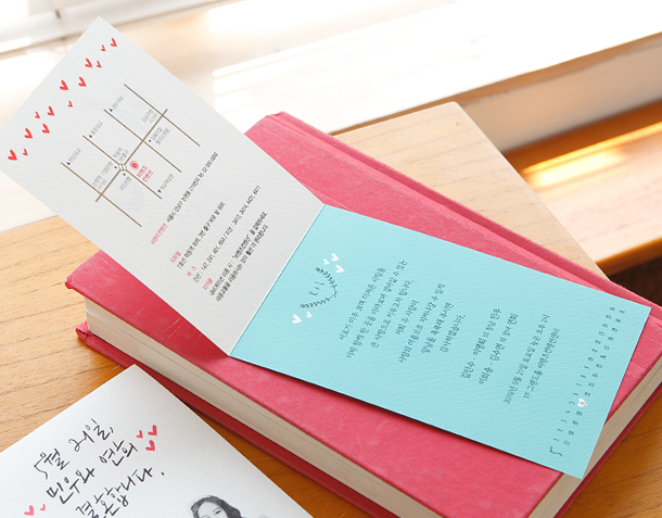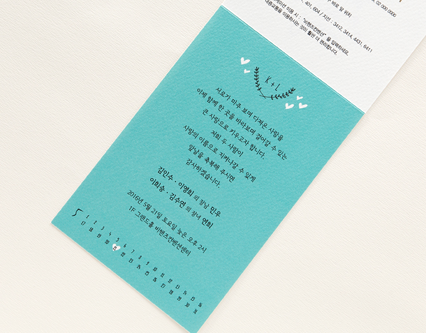 • 6. 청첩장은 앞면을 더 크게 제작하기 때문에 접었을 때 뒷면이 더 짧게 보여요.