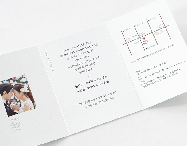 • 6. 청첩장은 앞면을 더 크게 제작하기 때문에 접었을 때 뒷면이 더 짧게 보여요.