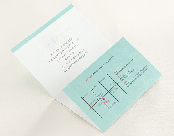 • 6. 청첩장은 앞면을 더 크게 제작하기 때문에 접었을 때 뒷면이 더 짧게 보여요.