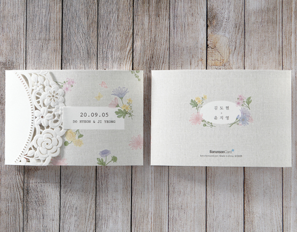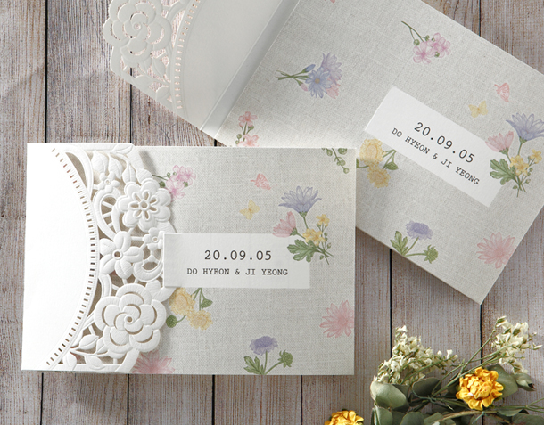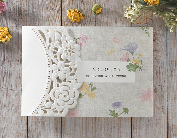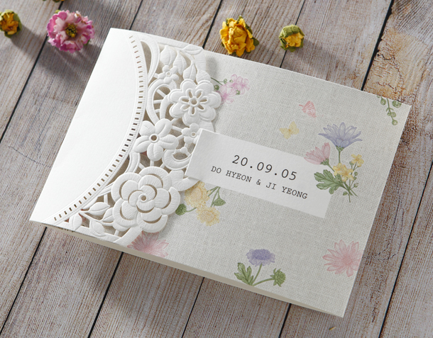 • 6. 청첩장은 앞면을 더 크게 제작하기 때문에 접었을 때 뒷면이 더 짧게 보여요.