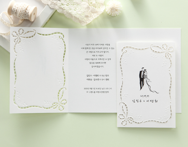 • 6. 청첩장은 앞면을 더 크게 제작하기 때문에 접었을 때 뒷면이 더 짧게 보여요.
