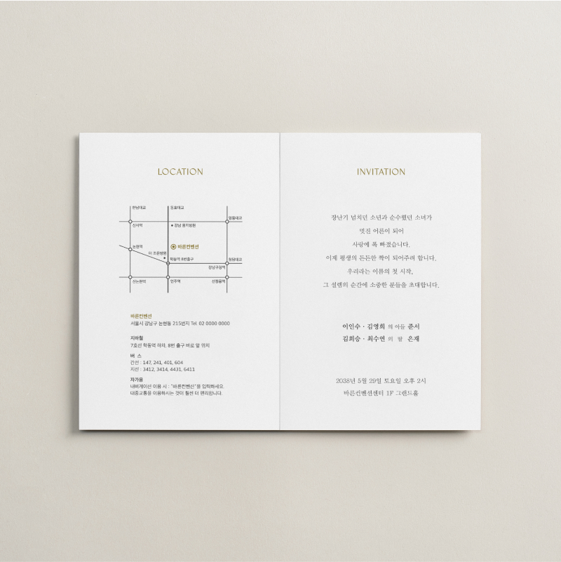 • 6. 청첩장은 앞면을 더 크게 제작하기 때문에 접었을 때 뒷면이 더 짧게 보여요.
